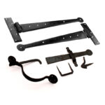 These beautiful ‘Standard Handforged Kit’ is traditionally made and forge-blackened with a beeswax finish. An authentic complement the period homes, barn conversions, cottages and for restoration projects. Each kit comes with matching screws to make for an easy installation and with 2 x 375mm steel strap hinges with penny end detail, and one thumb latch set with locking pin. Suitable for interior use. Ideal for Ledge and Brace cottage doors.