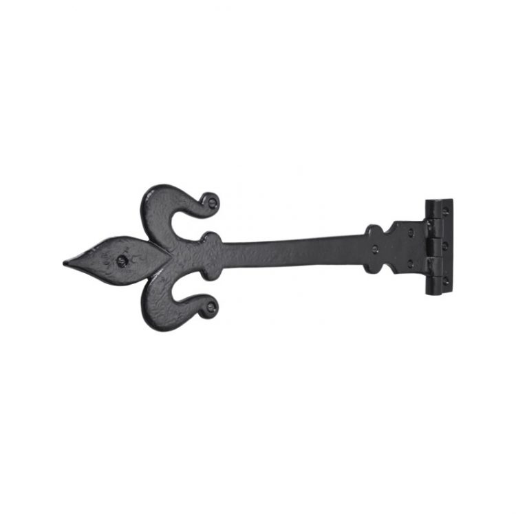 Our antique black ‘18″ Fleur de Lys Tee Hinges’ is made of high quality handmade wrought iron. Protected with a high density zinc rich undercoat to increase durability, with a UV colour fast black powder coated finish. These Hinges have a beautiful vintage look and are designed for medium duty applications, is the ideal solution for hanging medium sized shed doors and wooden gates as well looking distinctive.