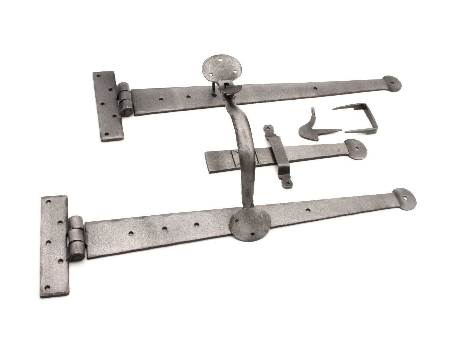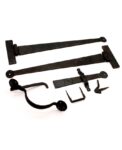 These beautiful ‘Standard Handforged Kit’ are traditionally made and forge-blackened with a beeswax finish. An authentic complement for period homes, barn conversions, cottages and for restoration projects. Each kit comes with matching screws to make for an easy installation and with 2 x 455mm steel strap hinges with penny end detail, and one thumb latch set with locking pin. Suitable for interior use. Ideal for Ledge and Brace cottage doors.