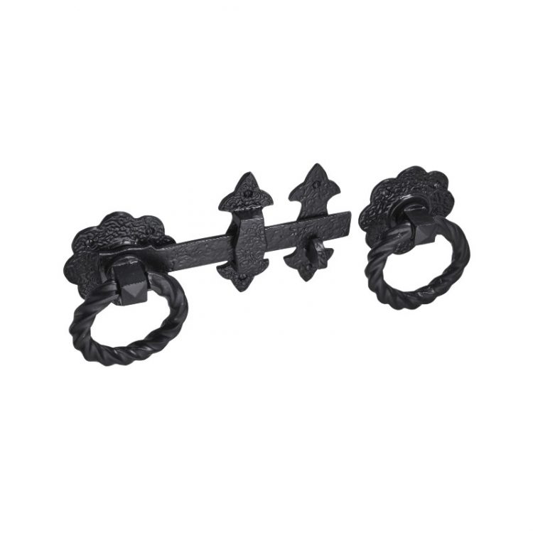 Our antique black ‘8″ Fleur de Lys Twisted Ring Gate Latch’ is made of high quality handmade wrought iron. Protected with a high density zinc rich undercoat to increase durability, with a UV colour fast black powder coated finish. It provides a simple mechanism to ensure an outdoor gate is kept in order and once installed, a more organised and sightly outdoor space which is not affected by the wind and disturbance by swinging free.