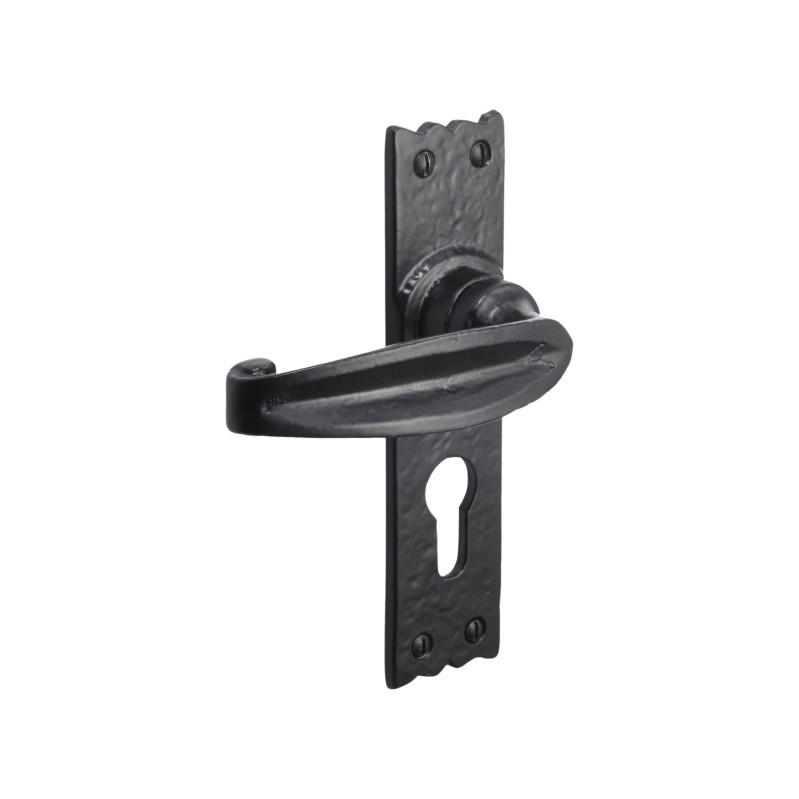 Our traditional ‘Charlbury Lever Euro Cylinder Door Handles’ of high quality cast iron construction. Protected with a high density zinc rich undercoat to increase durability, with a UV colour fast black powder coated finish with a stainless steel inner mechanism for increased endurance. It is designed with inward curved handle ending flourish for a comfortable grip that looks great on any door.