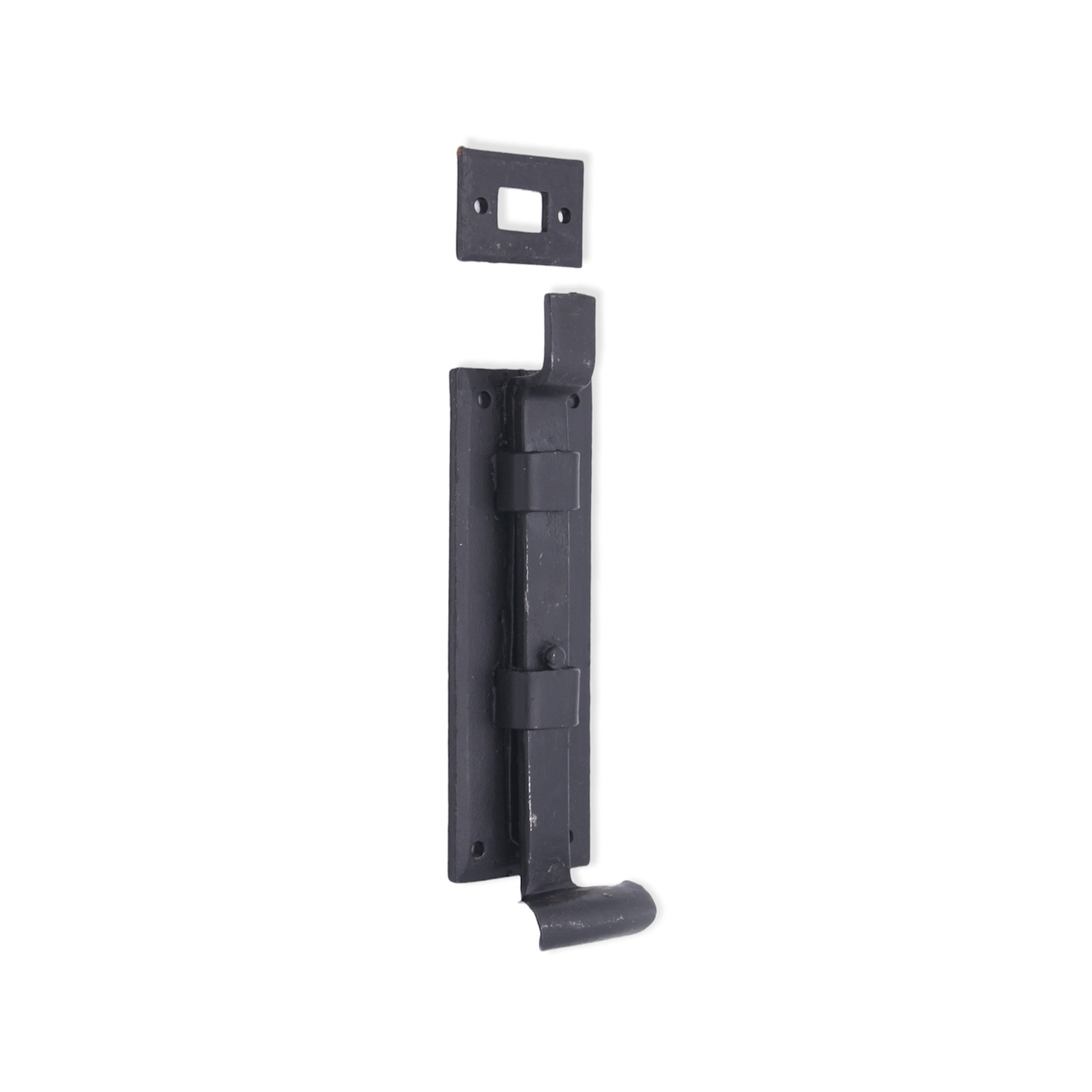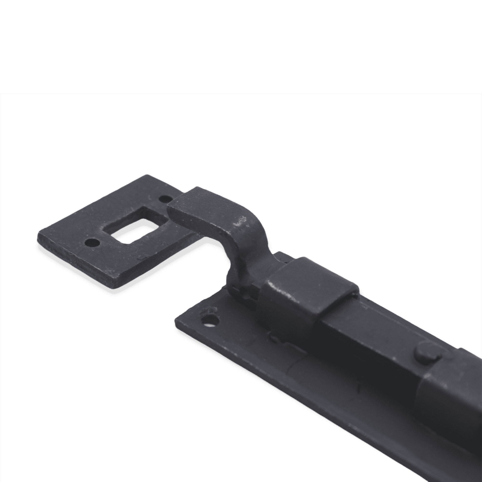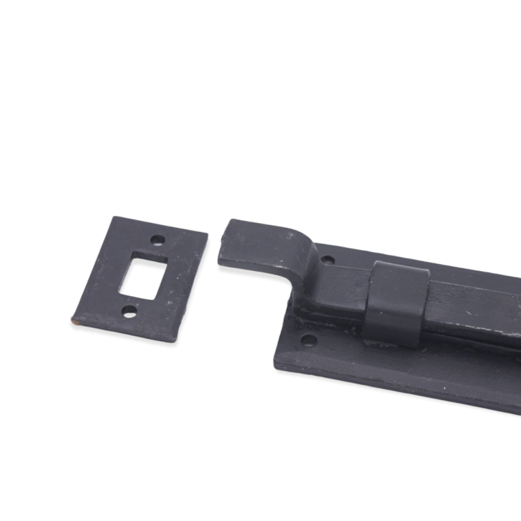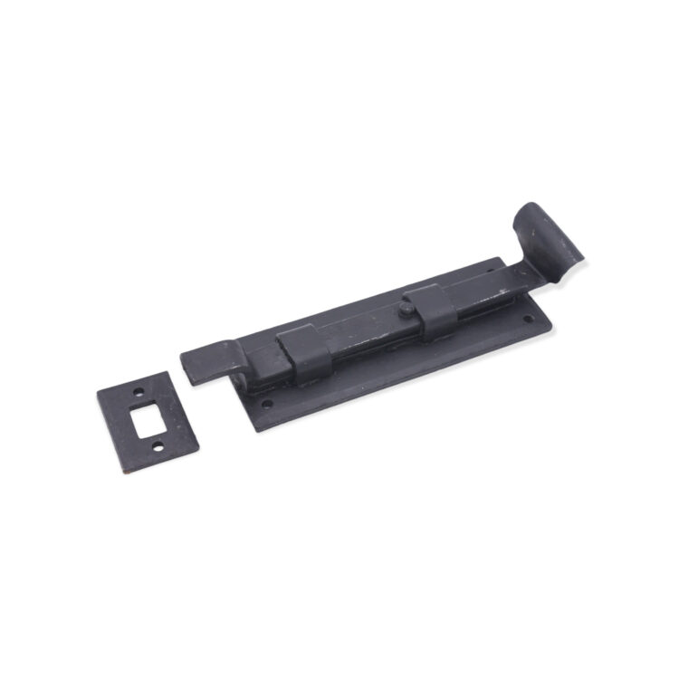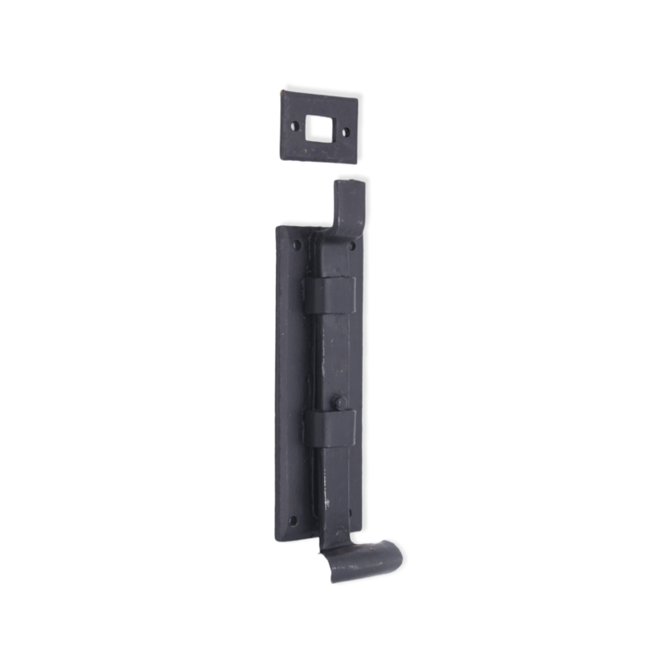 The ‘Cranked Flush Bolt’ decorative hand forged fishtail end is traditionally made and forge-blackened with a beeswax finish. A multi-purpose bolt which can be used horizontally & vertically due to the strong spring mechanism incorporated into the bolts on windows or outward opening doors.