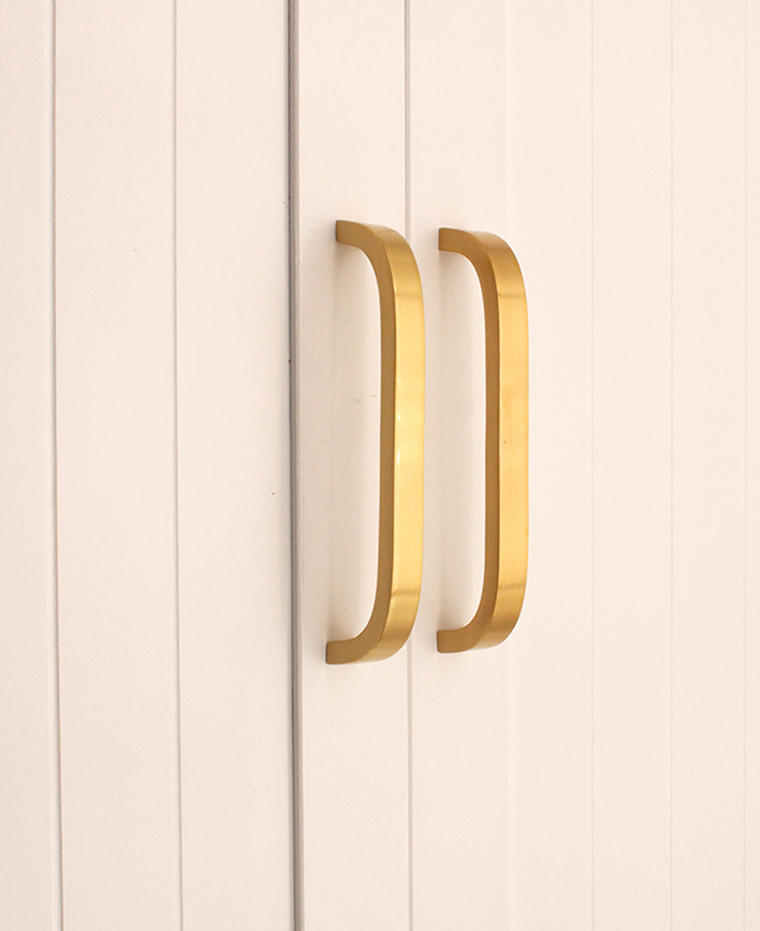 Our modern brushed ‘Curved Bar’ handle with a solid brass construction are perfect for injecting your wardrobes, cupboards and drawers.