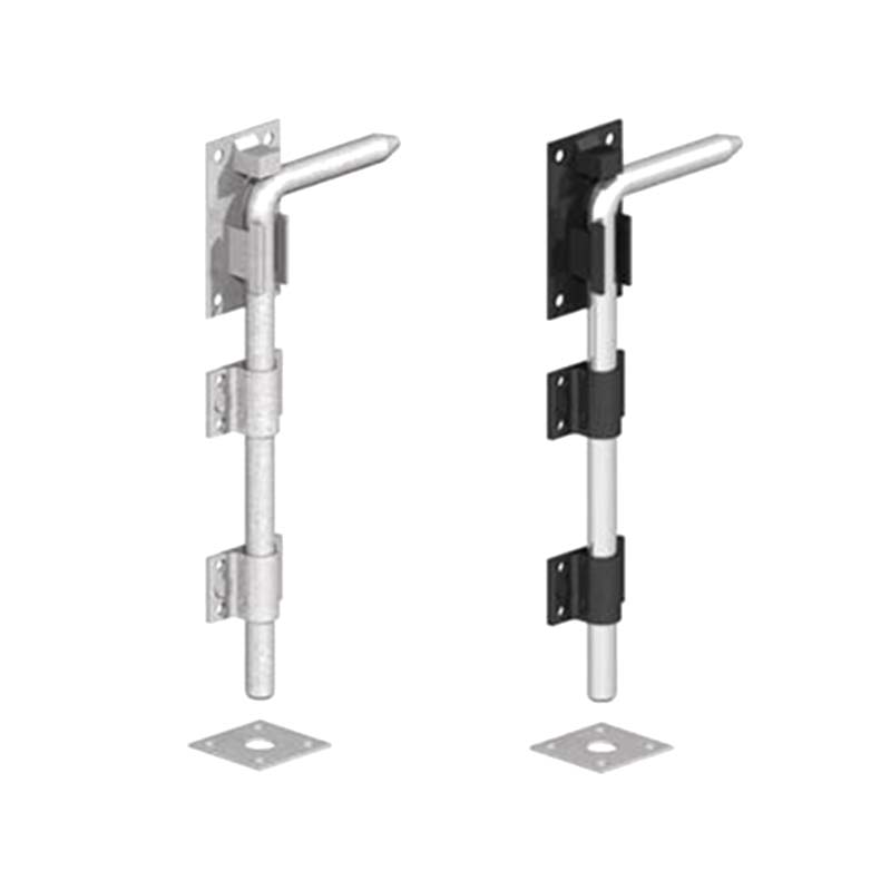 The ‘Drop Bolt’ is ideal for securing the bottom of timber gates and doors in industrial applications. The extended bolt length for ease of operation and an adjustable bolt throw by moving the keep position. Easy to install, constructed from iron material with high strength and hardness in two finish options zinc-plated and black powder-coated for resistance to corrosion. Supplied complete with screws.