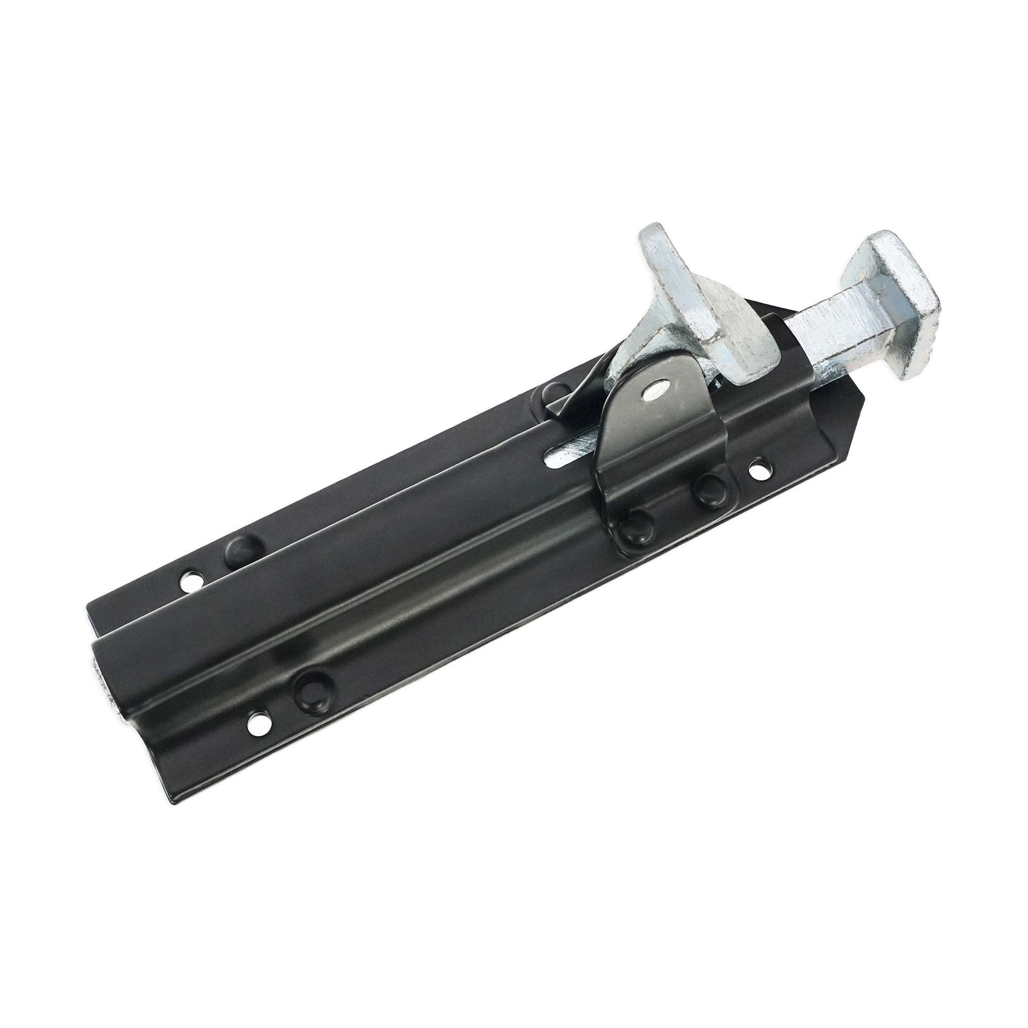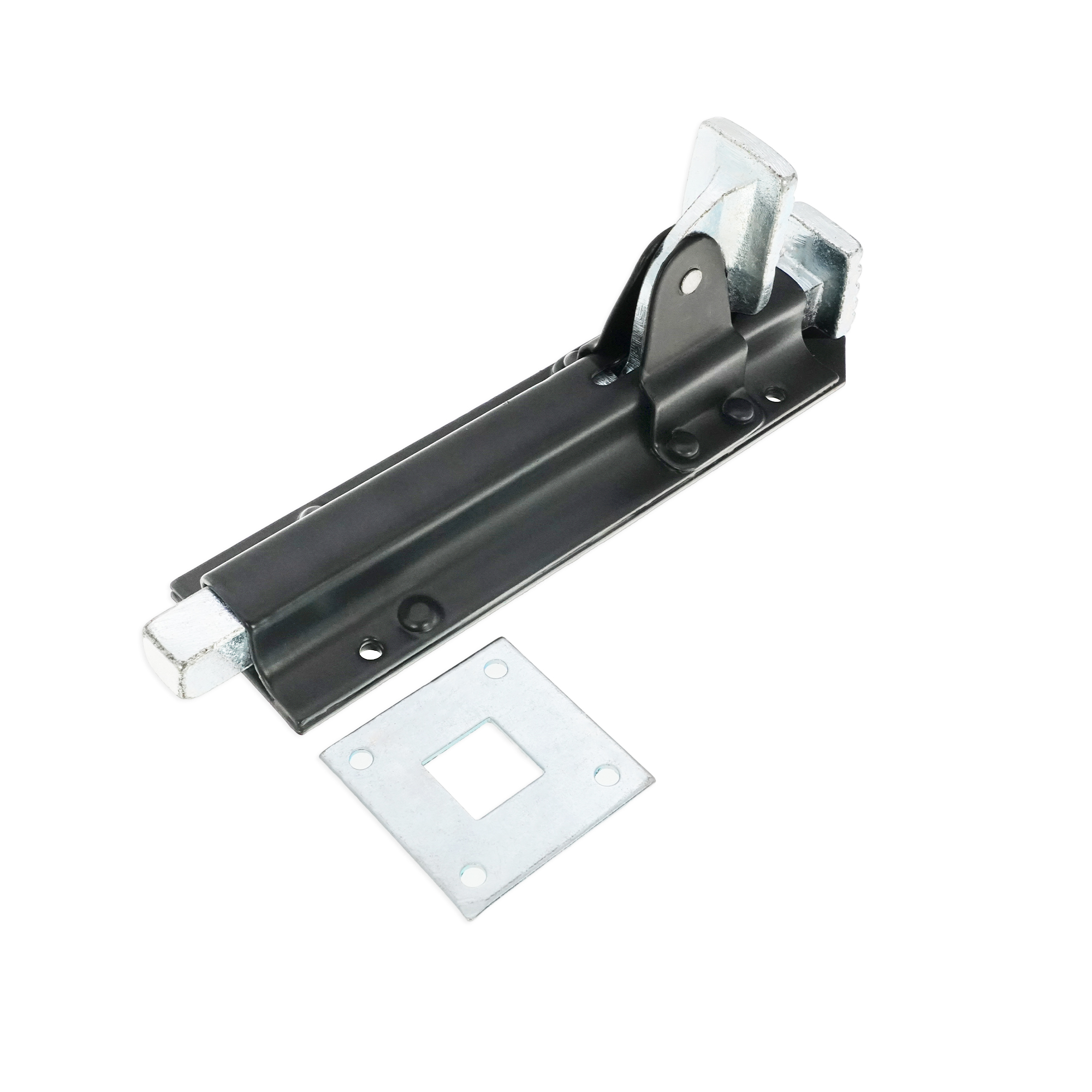 The ‘Foot Bolt’ is used at the bottom of the door to lock or unlock the gate or garage door. The bolt is thrown by pressing the foot down on the bolt and released by doing the same on the front ratchet pivot. Constructed from iron material with high strength in black powder-coated finish for resistance to corrosion. Supplied complete with screws.