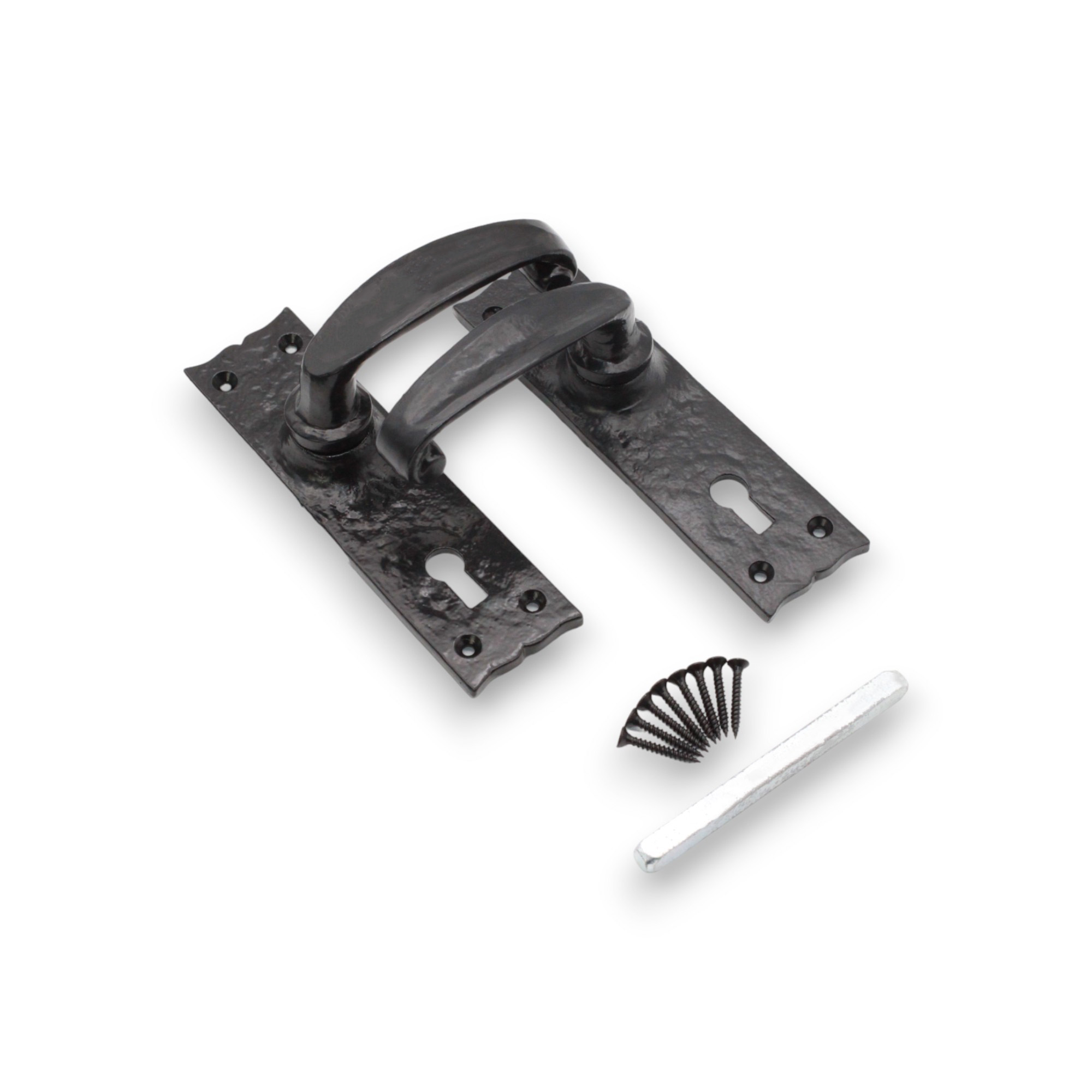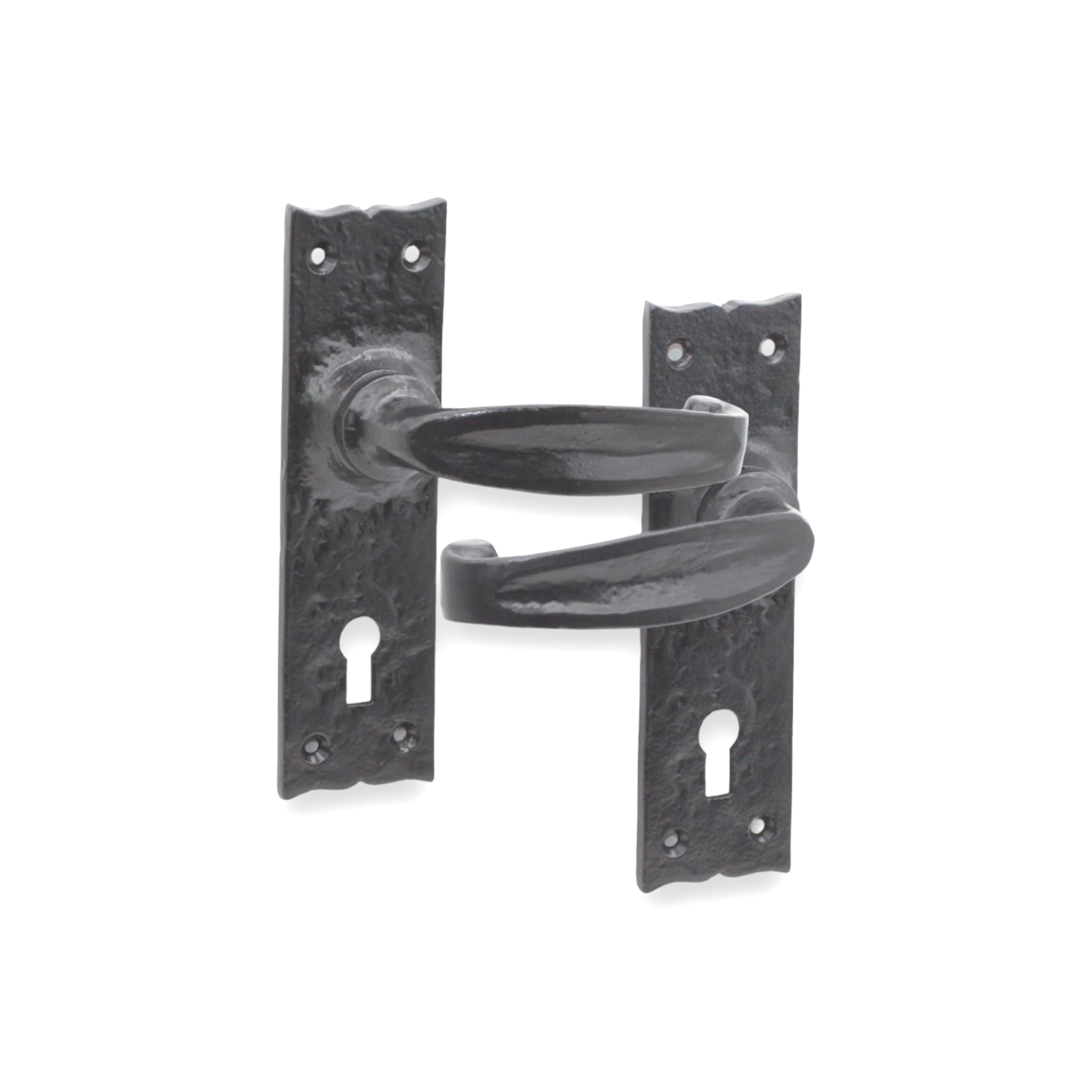 Our traditional and modern styles ‘Isabella’ internal backplate cast iron door handles with standard keyhole profile offer a timeless design, featuring a comfortable square head with scroll style lever for interior doors where you have decided to use lock type handles on backplate.