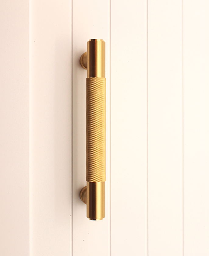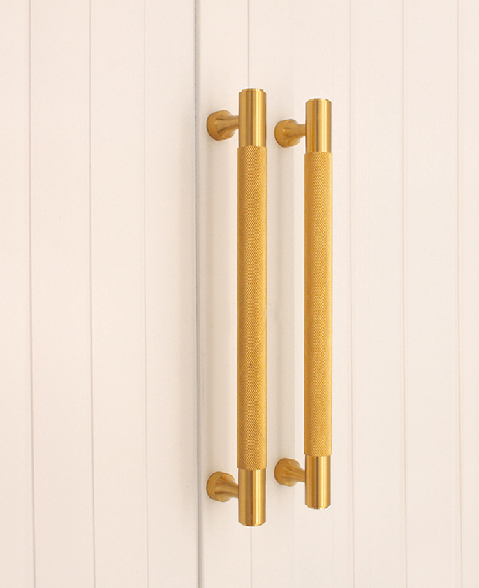 Our modern ‘Knurled Bar Cabinet Handle’ with a solid brass construction and a cross knurl patterned are perfect for injecting your wardrobes, cupboards and drawers with darker accents. It can be fitted either horizontally or vertically. Perfect for interiors seeking a clean look.