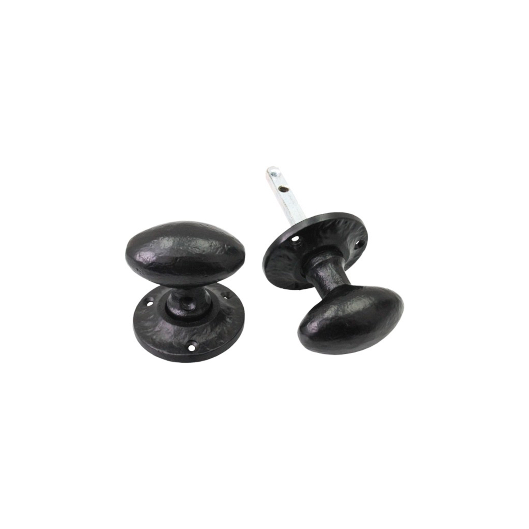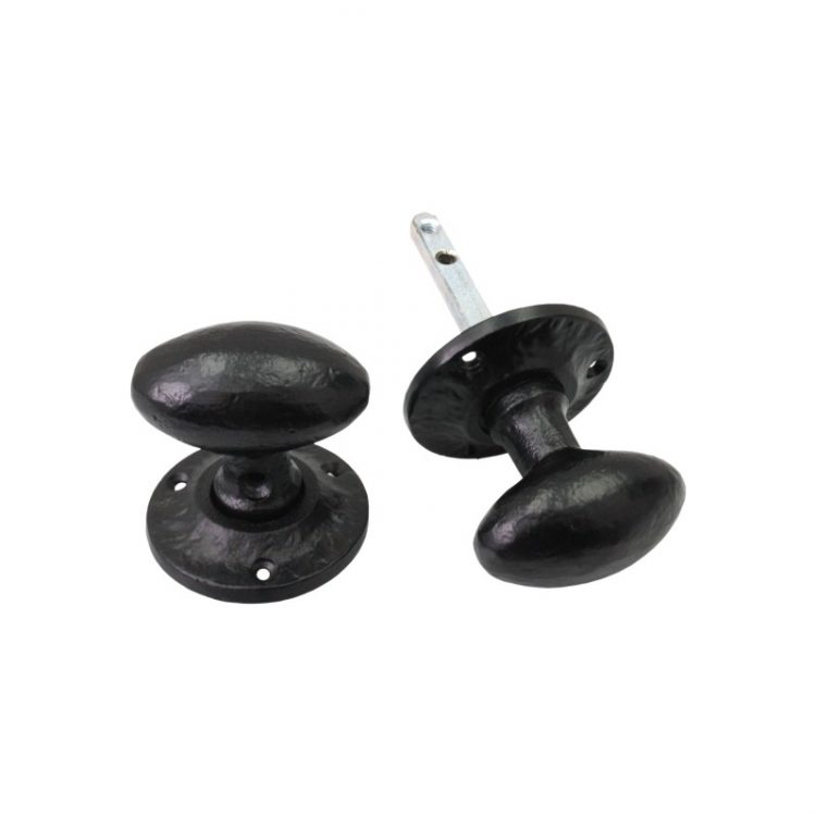 Our antique ‘Oval Rim Door Knob’ is cast from high quality iron material, giving it durability, style, and an easy assembly. Protected with a high density zinc rich undercoat to increase durability, with a UV colour fast black powder coated finish with a stainless steel inner mechanism for increased endurance. The clean oval shape for a comfortable grip which blends well with any traditional decor. It maintains great flexibility, as it can be used as a mortice knob since it’s unsprung and comes in pairs.