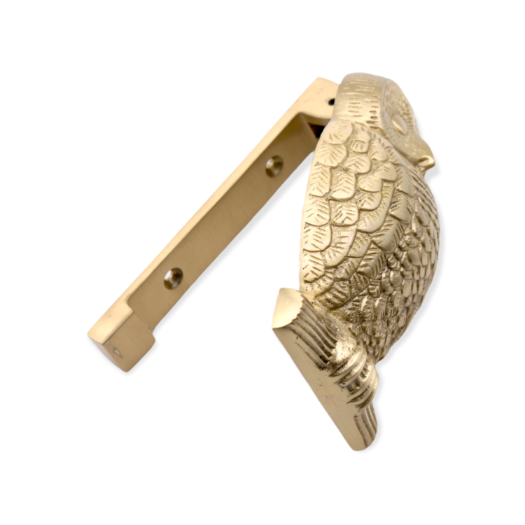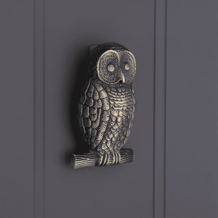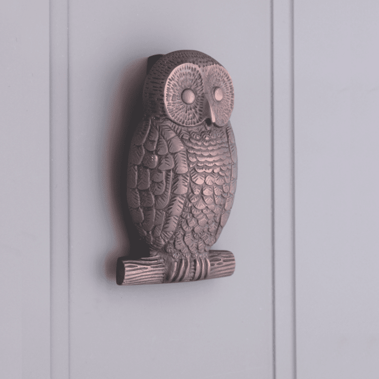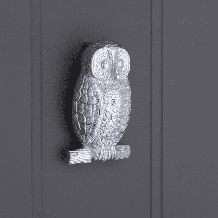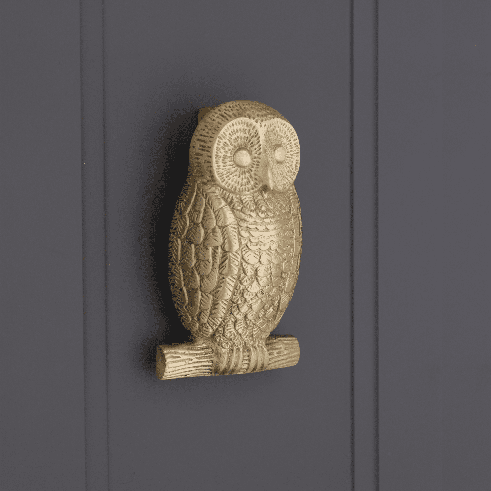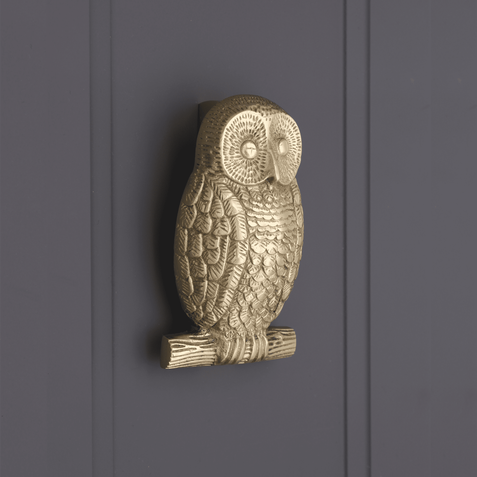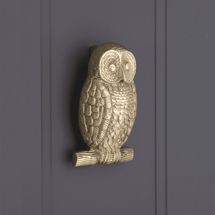 A watchful little fellow our ‘Owl Door Knocker’ made from solid brass, it stands out with its detailed etching and charming features on any door.