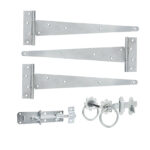 The Ironmongery Pack is the high-quality garden gate fitting kit comes with a standard 3 x T-Hinges with 1 x Brenton Bolt and 1 x Plain Ring Gate latch, all comes with matching fixing screws with zinc-plated for resistance to rust and corrosion. To be used externally or internally to securely close doors, garden gates and shed doors. Accessible from both sides of the gates.