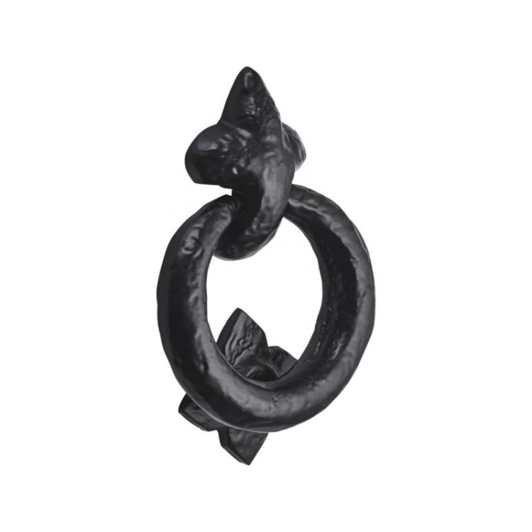 Our antique black ‘Ring Door Knocker’ is made of high quality cast iron. Protected with a high density zinc rich undercoat to increase durability, with a UV colour fast black powder coated finish. It has an attractive design with a concealed internal rear bolt through fixing that is only visible from internal side. The striking stud alerts the resident and protects the door from damage.