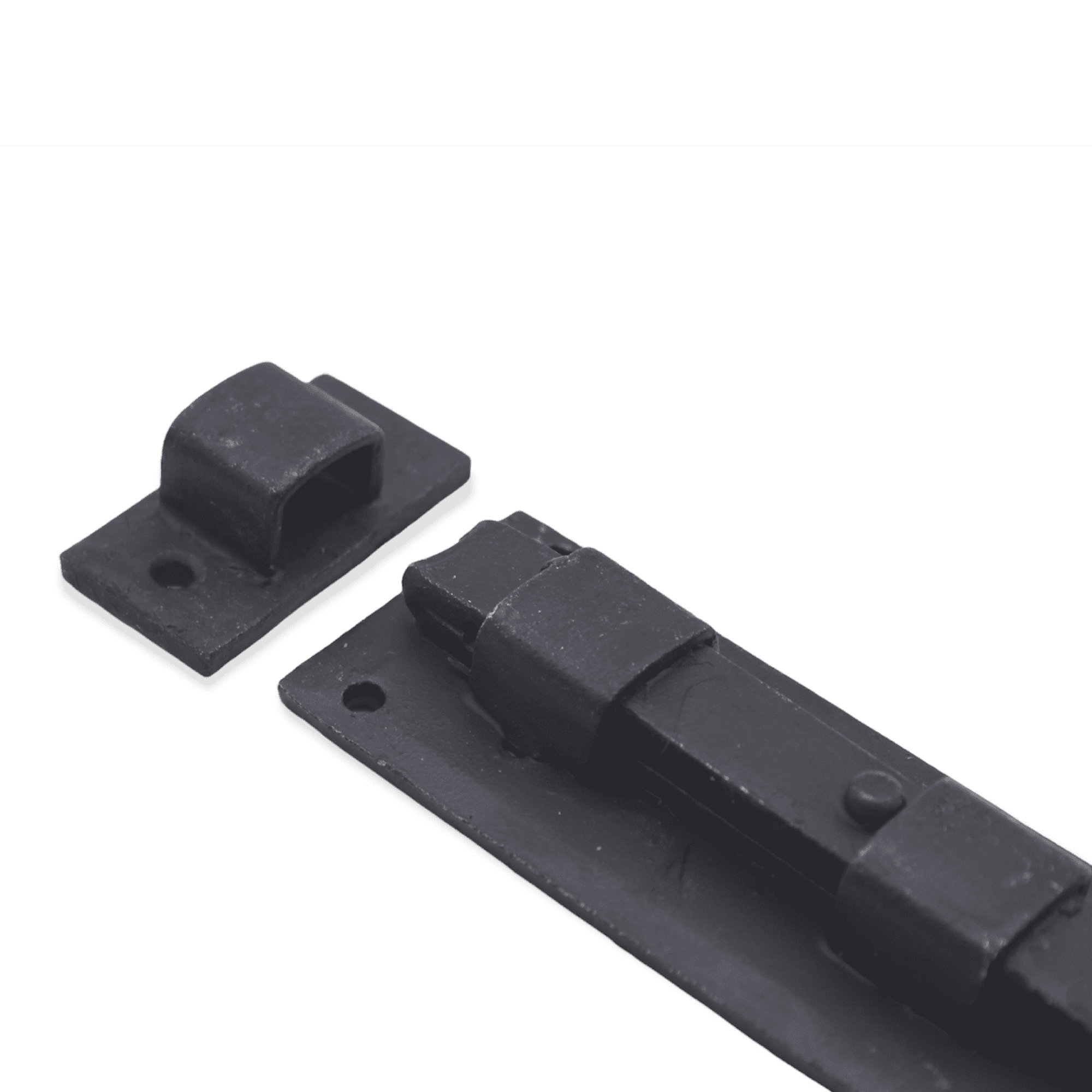 The ‘Straight Flush Bolt’ decorative hand forged fishtail end is traditionally made and forge-blackened with a beeswax finish. A multi-purpose bolt which can be used horizontally & vertically due to the strong spring mechanism incorporated into the bolts on windows or inward opening doors.
