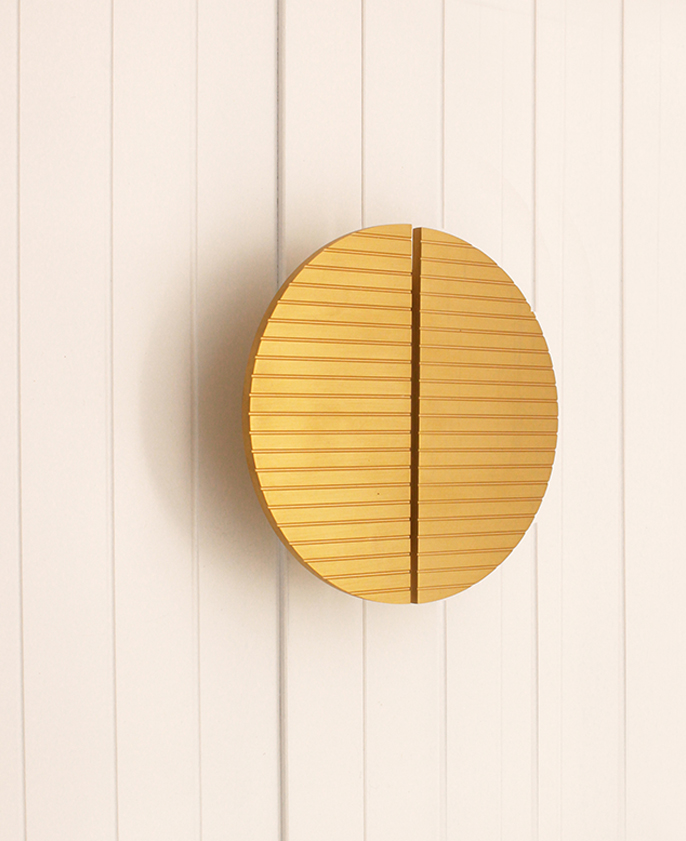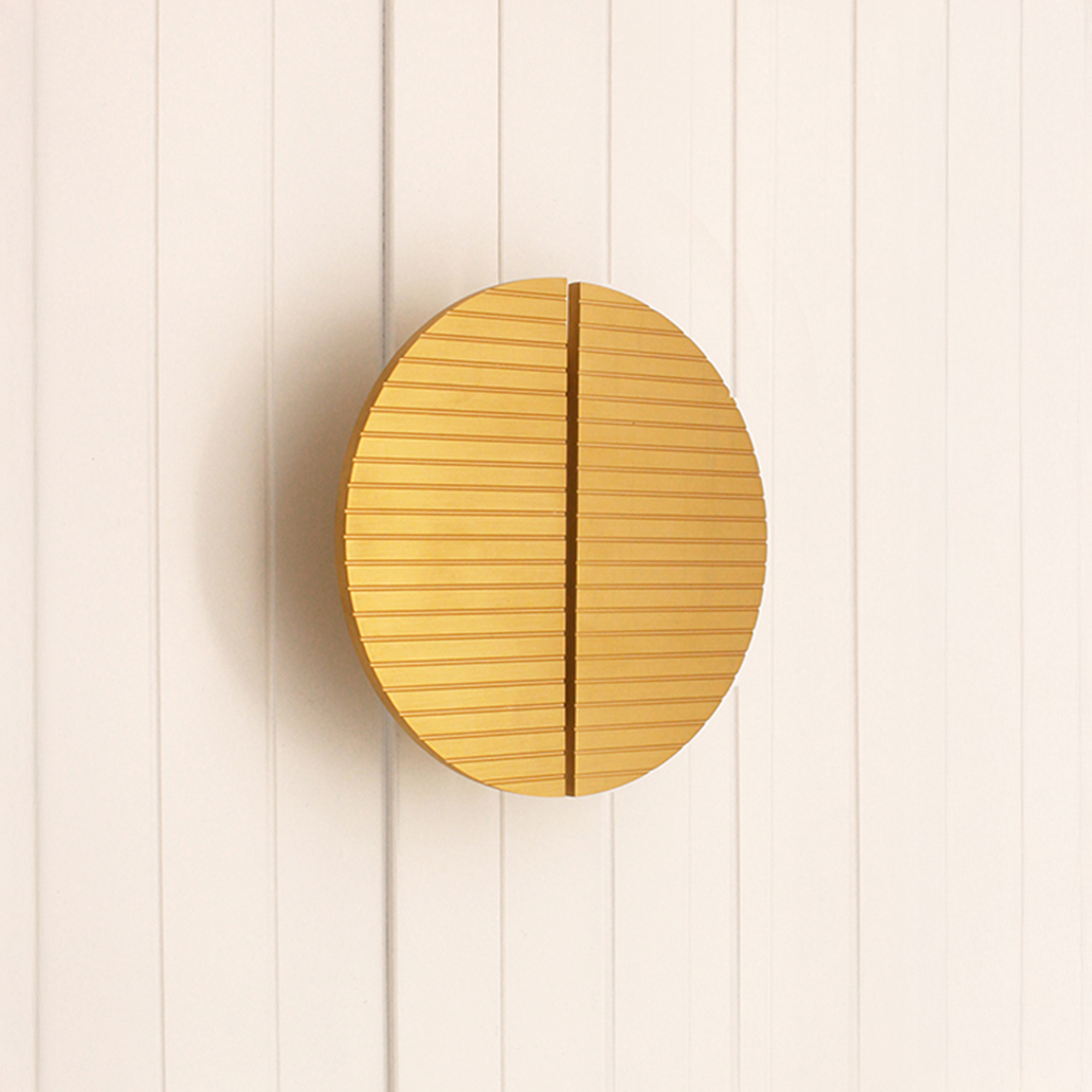 Our modern brushed solid brass construction with a ‘Striped’ pattern half moon cabinet handles create a full circle once placed together and bring luxury to any home.