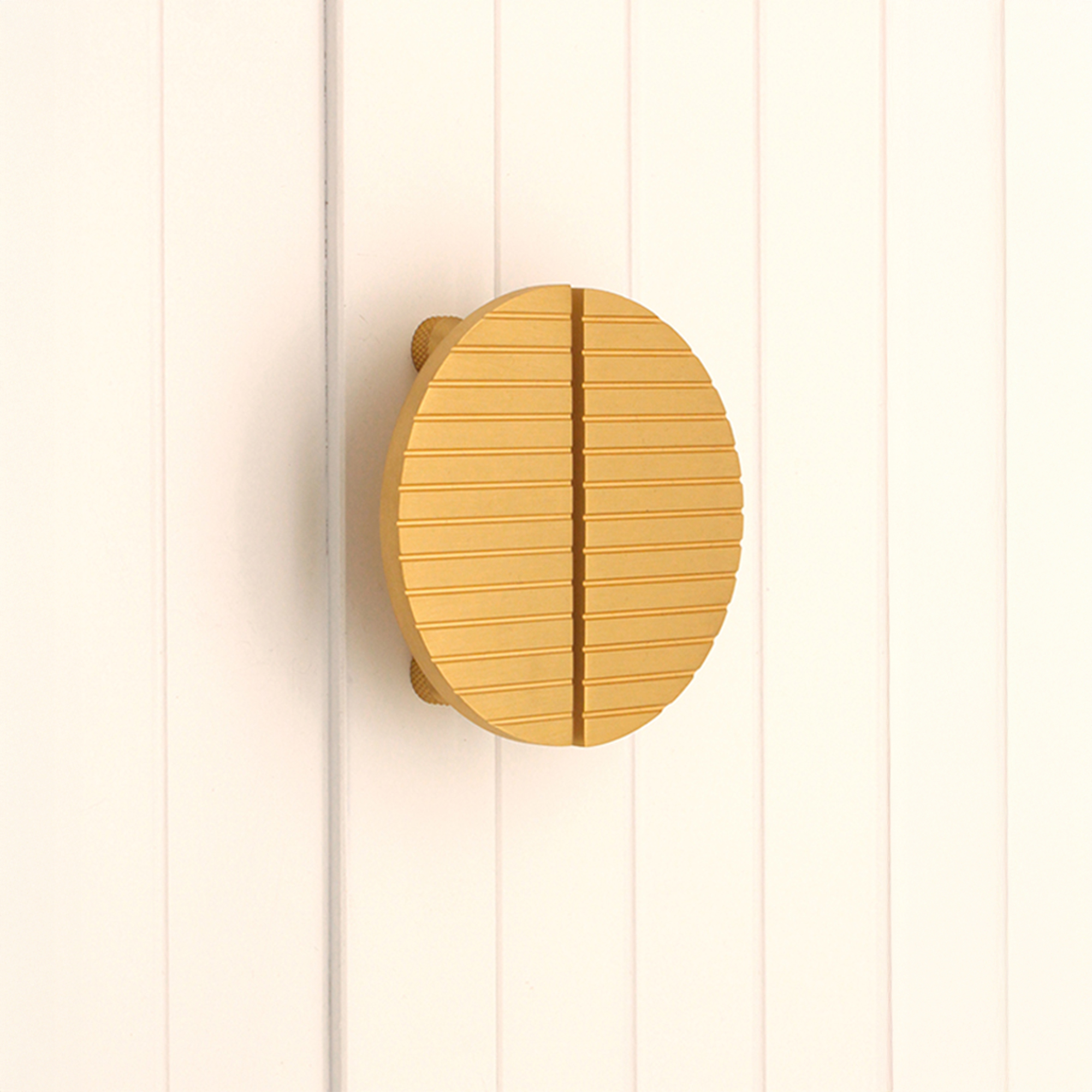 Our modern brushed solid brass construction with a ‘Striped’ pattern half moon cabinet handles create a full circle once placed together and bring luxury to any home.