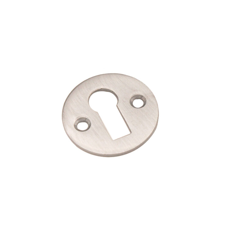 ‘Victorian Key Hole Open’ flat escutcheon cast from solid brass is a decorative slim style surround key hole for external door use which also covers joinery work with a screw-on face fixing.